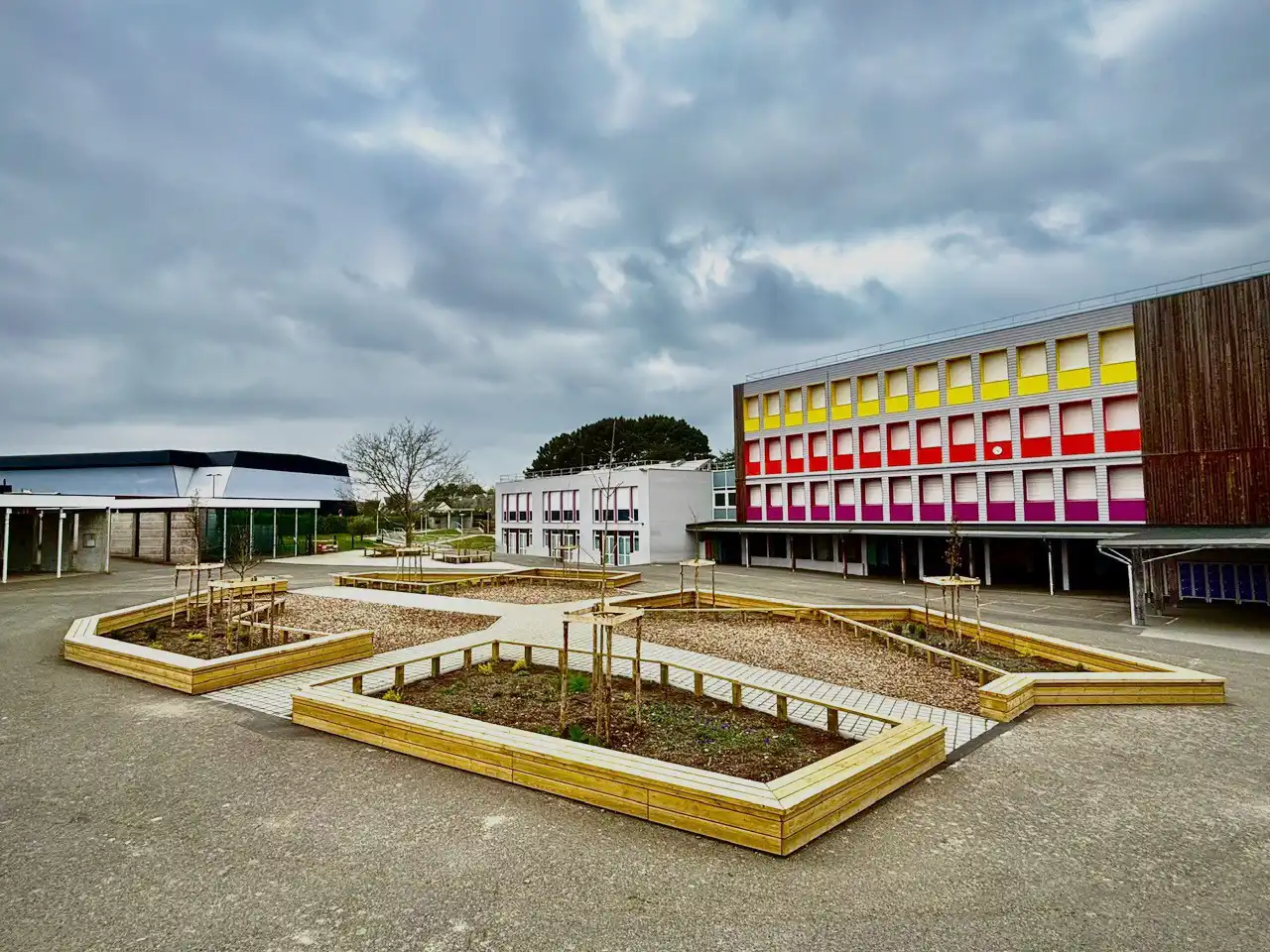 - désimperméabilisation d’une grande partie des espaces extérieurs, pour une meilleure gestion des eaux pluviales et la création d’îlots de fraîcheur pour composer une cour « oasis »