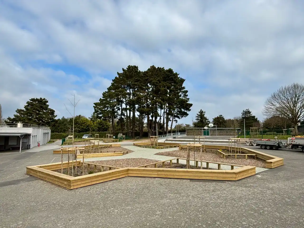 - mise en place de mobiliers sur mesure, assise en bois et de tables de pique-nique disposées au sein des îlots de fraicheur,…